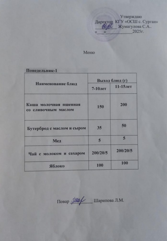 2024-2025 оқу жылында тамақтандыру