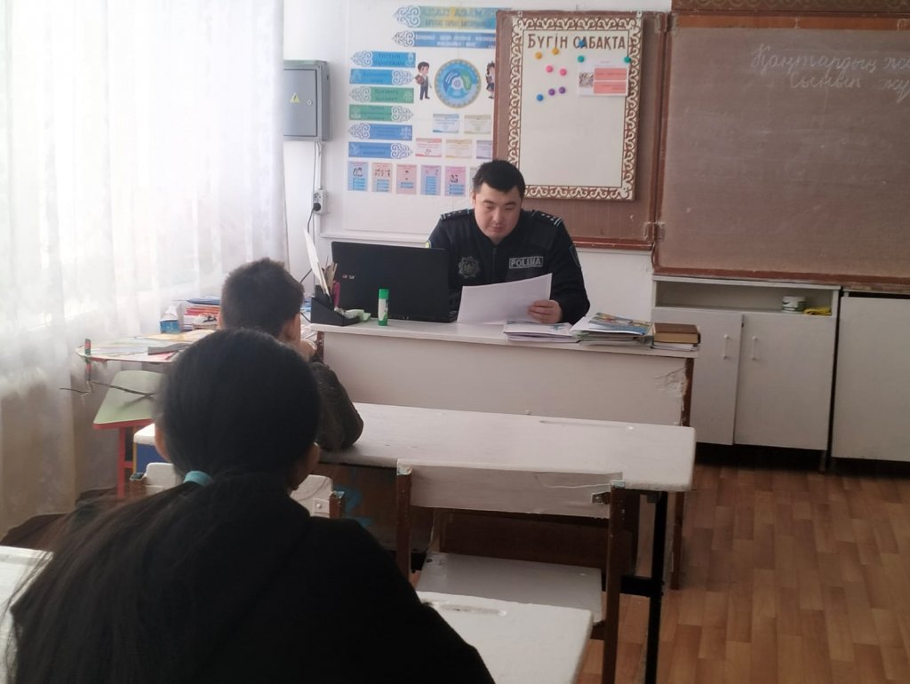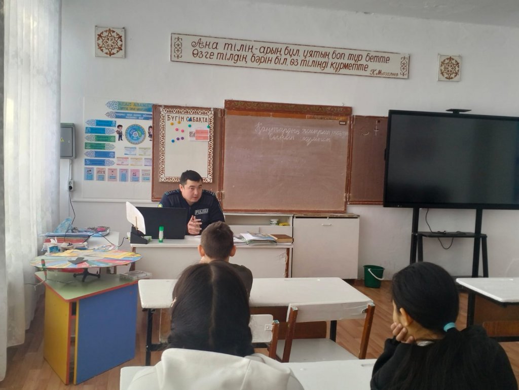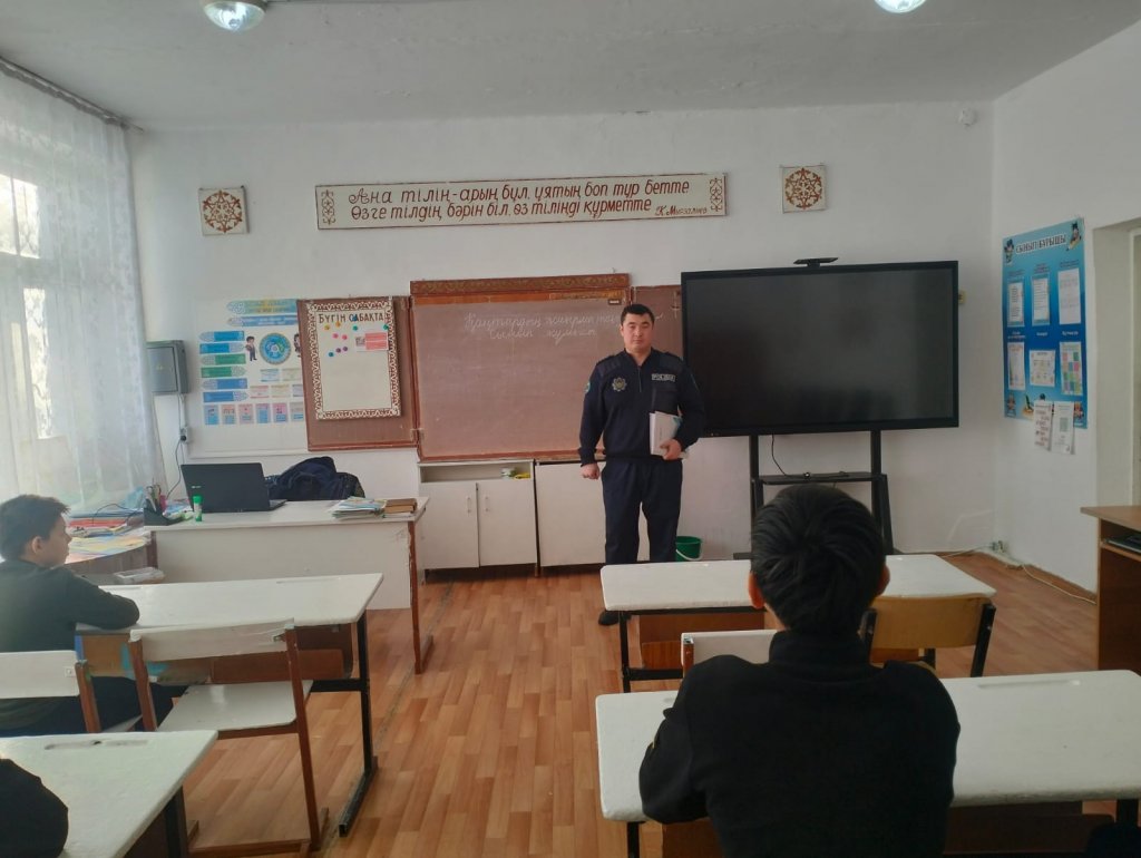 29.01.2026 ж. 7 -9 сынып оқушылары арасында учаскелік инспектор Абаканов С. Қ.-пен кездесу өтті